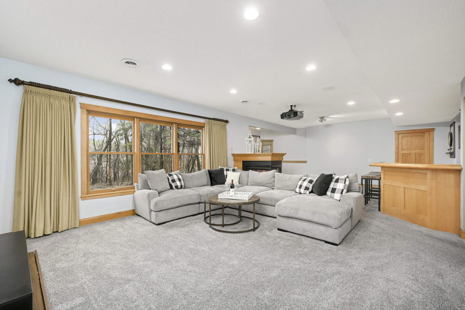 Lakeville School District! Inviting foyer accompanied by a formal dining room and sun filled office space. The living room features high ceilings, a multi-sided fireplace shared with the eat-in kitchen which connects to a cozy screened-in porch for relaxation. All bedrooms and 3 baths are conveniently situated on the upper level, including a charming Jack & Jill arrangement. Descend to the lower level to a fully finished space, complete with a walkout to the private, tree-covered backyard. The lower level features high ceilings, a wet bar, generous storage, and a versatile flex space perfect for exercise equipment. Curb appeal includes a large 3-car garage with stunningly designed garage doors, and a covered front porch perfect for summer mornings. In close proximity to everything that matters, including shopping, restaurants, Buck Hill Ski Resort, three great recreational lakes, Mpls/St.international airport, five world-class golf courses, Mystic Lake Casino, and Canterbury Park.